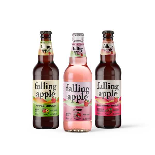 A mixed case of 12 bottles made up of 3 different styles of cider from the Falling Apple range.